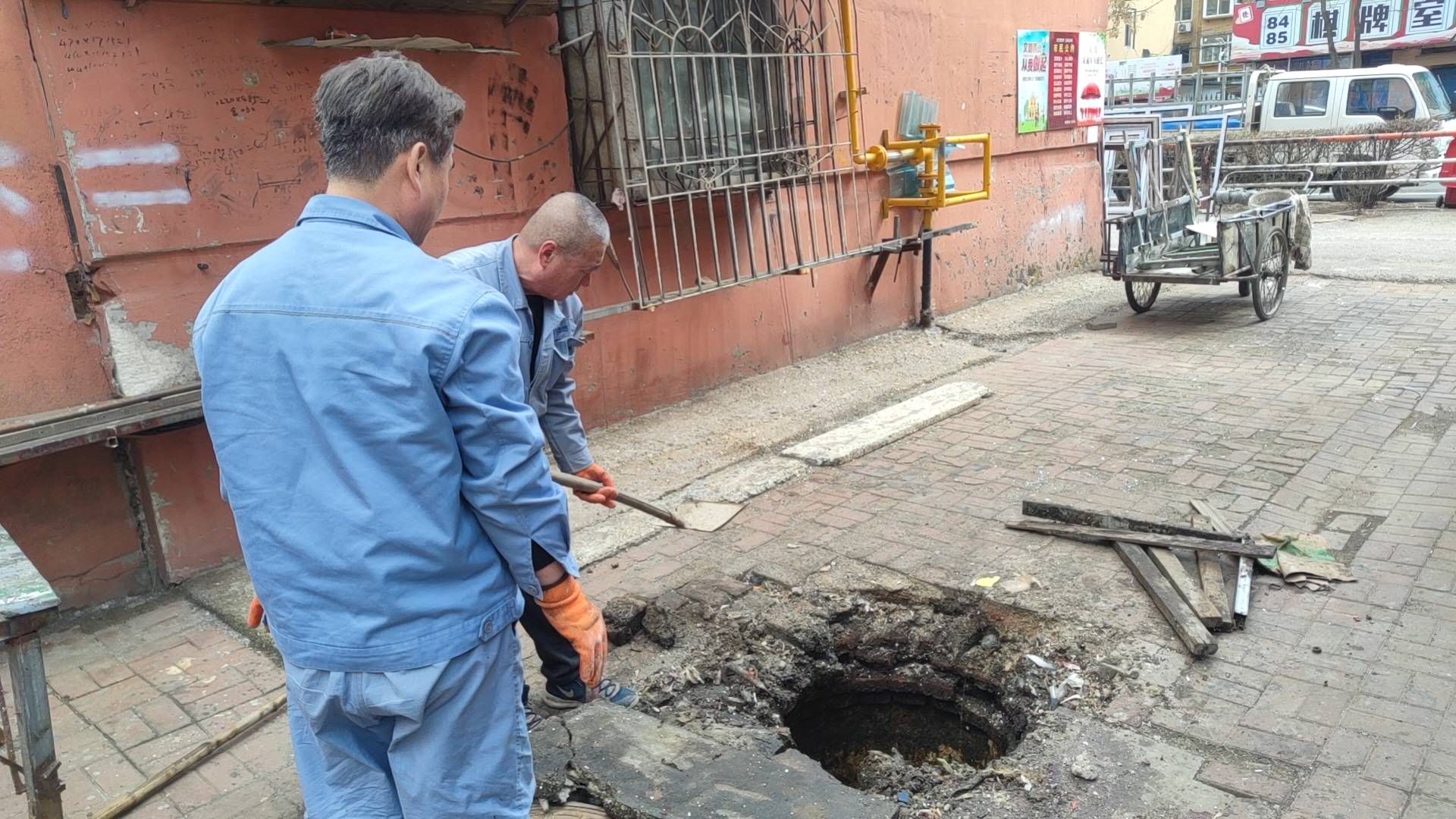 | 2026-04-08 | 住户报修外井满了,(住户上午在分公司报修过,有维修人员排查过)。 | 肖波,张传利,杨福刚,何志国,宋波,王卫东,李明升 | ![]() |